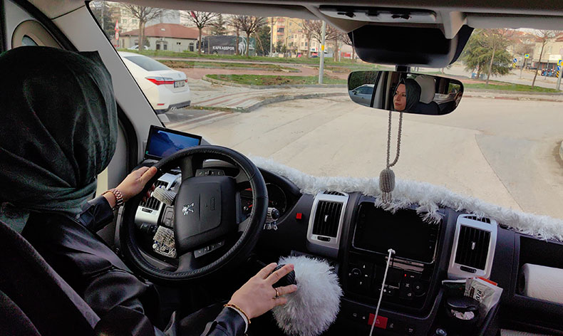 Bursa’nın İnegöl ilçesinde 5 yıldan bu yana okul ve işçi servis minibüsü şoförlüğü yapan Nazire Atış, ayrıca ev işlerine ve 3 çocuğuna da vakit ayırıyor.