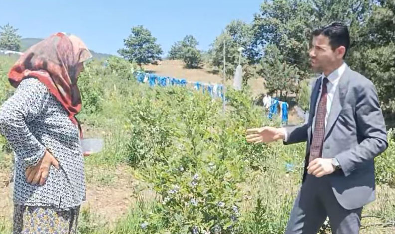 Çitfçi Durdu Kaya ile sohbet eden Kamil Turhan, yaban mersini hakkında sorular sordu. Daha sonrasında da yaban mersini toplayarak çiftçilerle sohbete devam etti.