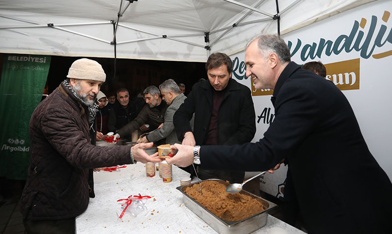 AK Parti Bursa Milletvekili Ayhan Salman, Belediye Başkanı Alper Taban, AK Parti İlçe Başkanı Mustafa Durmuş ve parti yöneticileri ile meclis üyeleri de kandil gecesi yatsı namazında Hacı Lütfullah Camisinde ilçe halkıyla buluştu. Vatandaşlarla kandilleşip sohbet eden protokol üyeleri, namazın ardından helva kazanlarının başına geçti. Burada bin kişilik helva ikramıyla kandili gecesi helva ikramı geleneği sürdürüldü.