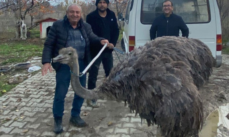 Deve kuşunun çiftlikten kaçtığını belirten sahibi, bulunmasını sağlayan belediye ekiplerine teşekkür etti.