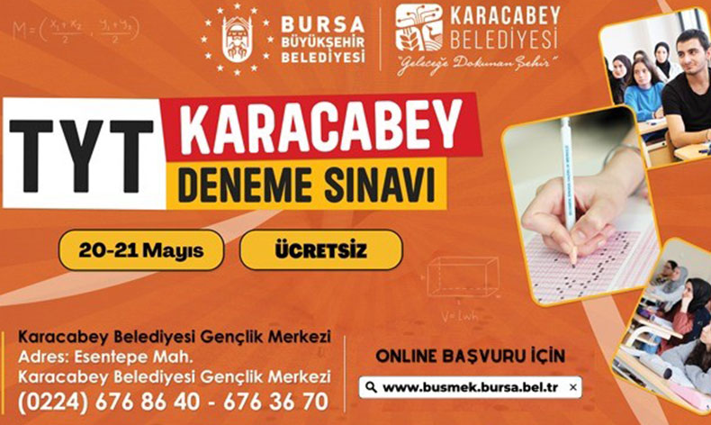 Bursa Büyükşehir Belediyesi, üniversiteye girmeyi planlayan Karacabeyli gençleri gerçek sınav psikolojisine hazırlamak amacıyla, gerçeğe yakın formatta ücretsiz bir TYT deneme sınavı düzenliyor.