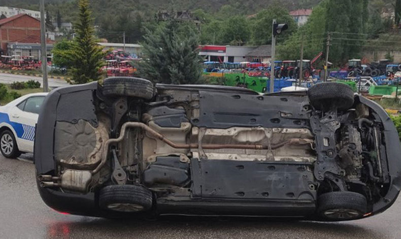 Z.D. (60) idaresindeki otomobil, Bolu’nun Gerede ilçesi istikametinden Karabük’ün Eskipazar ilçesi istikametine seyir halindeyken Mermer mevkisinde yağmur yağışı sonrası kayganlaşan yolda sürücüsünün direksiyon hakimiyetini kaybetmesi sonucu refüjdeki ağaçlara ve aydınlatma direğine çarptı. Çarpmanın etkisizle otomobil devrilirken, sürücü ile birlikte otomobilde yolcu olarak bulunan A.D ve Y.G yaralandı.