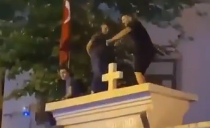 İstanbulKadıköy’de bulunan Surp Takavor Ermeni Kilisesi’nin kapısının üzerine çıkan 2 kişi çalan müzik eşliğinde karşılıklı oynadı. Sosyal medyada hızla yayılan görüntüler tepki topladı. Olayla ilgili 3 kişinin gözaltına alındığı belirtildi.