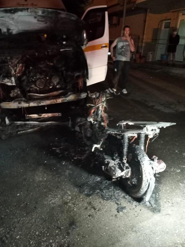 Kundaklanan motosiklet ile yakınındaki minibüs yandı