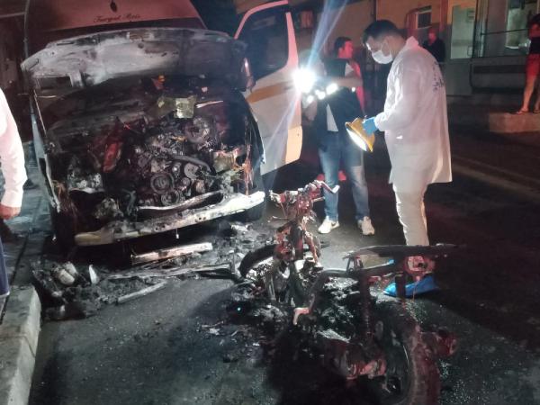 Görgü tanıklarının ifadesine göre, motosikletin üzerine benzin dökülerek kundaklandığı ileri sürüldü. Yangında motosiklet ve minibüste maddi hasar meydana geldi. Olayla ilgili polis ekipleri, motosikleti kundakladığı öne sürülen kişi veya kişileri yakalamak için çalışma başlattı.