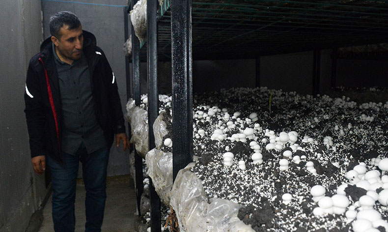 Bitlis’in Tatvan ilçesinde kurduğu üretim tesisinde kültür mantarı üretimi yapan girişimci Orhan Kaçmaz, yaptığı üretimle bölgenin mantar ihtiyacını karşılıyor.