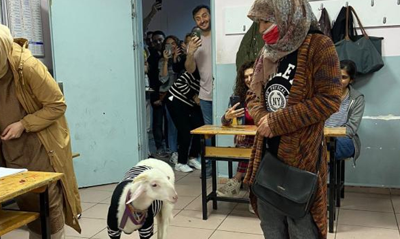 Sarıyer’de bir kadın, üzerine kazak giydirdiği kuzusuyla birlikte sandık başına giderek oy kullandı. Oy kullanılan sınıfta kuzuyu gören vatandaşlar, şaşkınlığını gizleyemedi.