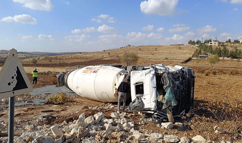Mardin’de devrilen beton mikserinin sürücüsü yaralandı
