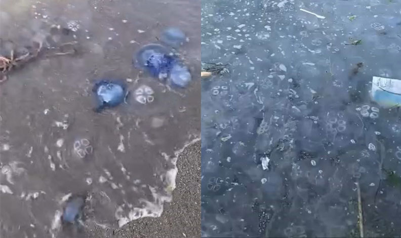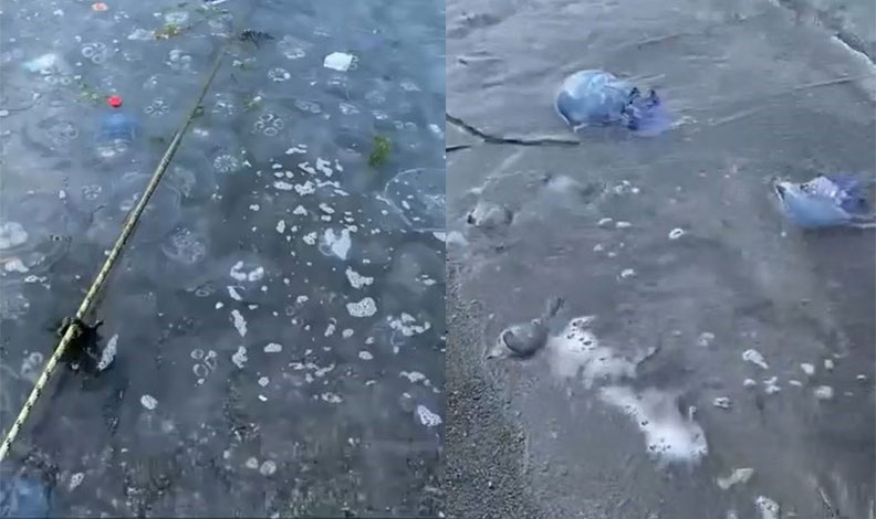 Bursa’nın Gemlik ilçesi sahilini saran mavi renkli denizanaları vatandaşları tedirgin etti.