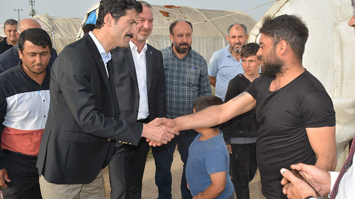 Karacabey Kaymakamı Hakan Kafkas ve Belediye Başkanı Fatih Karabatı’dan oluşan heyet, önceki akşam Bakırköy’deki mevsimlik tarım işçilerinin çadırlarını ziyaret ederek, vatandaşlarla bir araya geldi. Mevsimlik tarım işçilerinin sorunlarını yerinde dinleyen ve çözüm noktasında yapılması gerekenleri tespit eden Kaymakam Hakan Kafkas ve Belediye Başkanı Fatih Karabatı, “Devlet burada, her zaman yanınızdayız.” mesajı verdi.