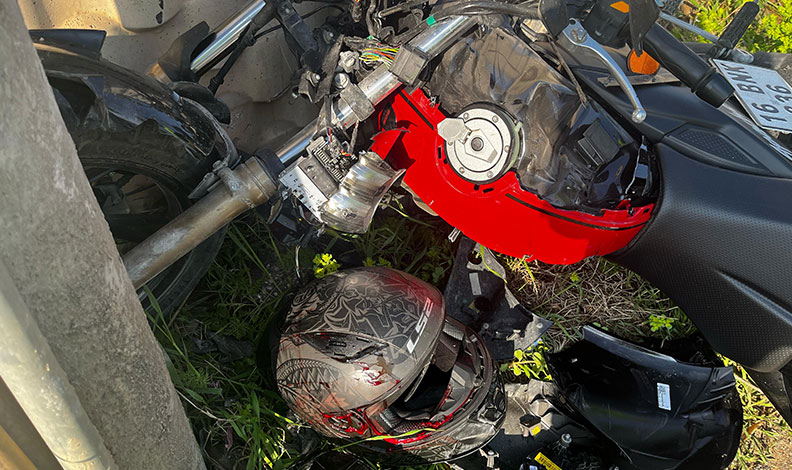 Motosikletin kontrolden çıkması ile birlikte genç sürücü duvara ve direğe çarptı