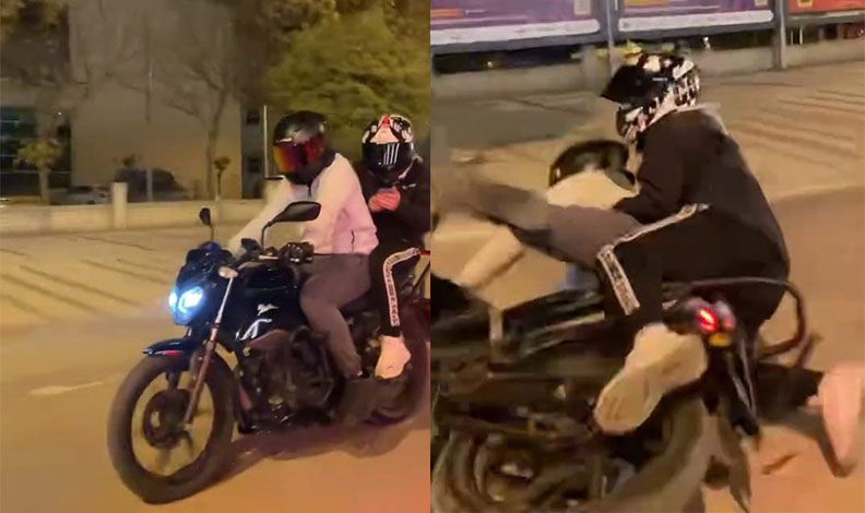 Kaza anı, çevredeki bir sürücünün cep telefonu kamerasına yansıdı. Görüntülerde, motosikletin ön tekerleğini kaldırmaya çalıştığı sırada devrildiği ve iki kişinin yola savrulduğu anlar yer alıyor.