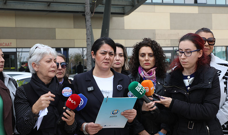 Mudanya’da çalıştığı iş yerinde eski eşi tarafından bıçaklanarak ağır yaralanan M.E’ye destek olmak ve kadına yönelik şiddet olaylarına karşı Mudanya Belediyesi Kadın Eşitlik Merkezi (KEM) tarafından basın açıklaması gerçekleştirildi. M.E.’nin tedavi gördüğü Bursa Şehir Hastanesi Acil Servisi önünde yapılan açıklamaya Mudanya Belediye Başkan Yardımcıları Nisa Kartaltepe ve Av. Sağra Kahraman Sevinç ile belediye meclis üyeleri, KEM yöneticileri, Mudanya Kent Konseyi Kadın Meclisi üyeleri ve kadınlar katıldı.
