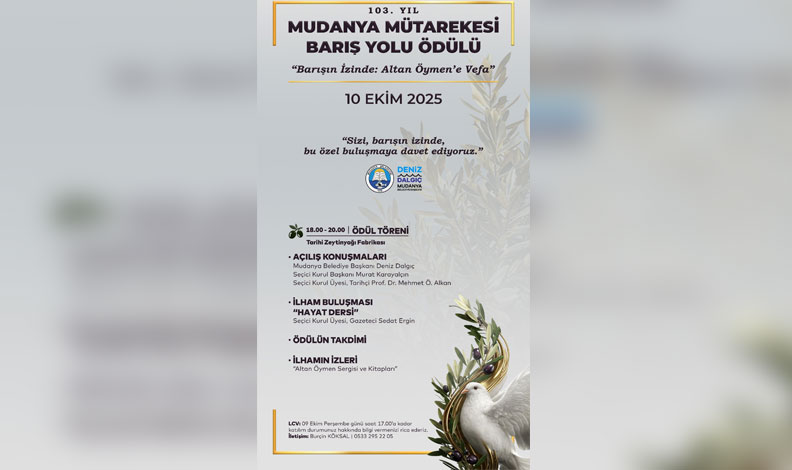 Saat 18.00-20.00 arasında düzenlenecek söyleşide, Mudanya Belediye Başkanı Deniz Dalgıç, “103. Yılında Mütareke Ruhu” başlıklı konuşmasını yapacak. Ardından tarihçi Prof. Dr. İlber Ortaylı ve yazar Ayşe Gülsün Bilgehan, “Mudanya ve Barışın Mirası” konulu oturumda barışın tarihsel önemini ele alacak.