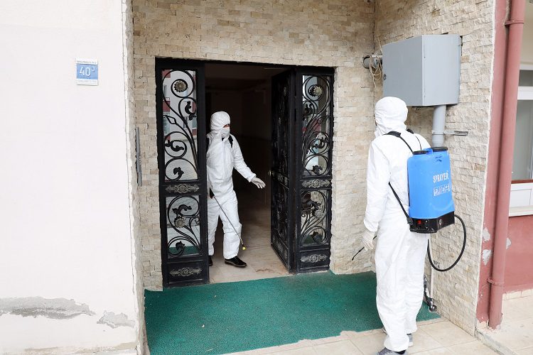 Mudanya Belediyesi ilçe genelinde cadde ve sokaklarda elle temas edilen tüm yüzeylerde yapılan temizlik ve dezenfekte çalışmalarının yanı sıra, apartman ve sitelerde ilaçlama çalışmalarına devam ediyor.