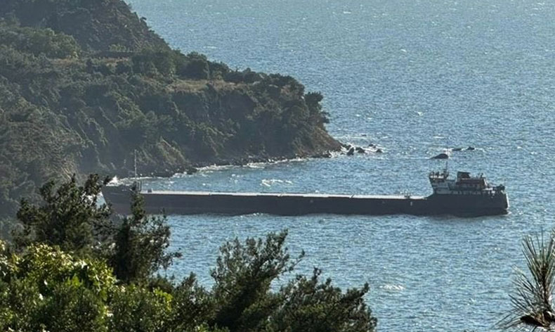 İstanbul’dan Bursa’nın Gemlik ilçesine hayvan yemi getiren içerisinde 2 bin 200 ton sıkıştırılmış hayvan yemi bulunan Panama Bandıralı VOLGO BALT 213 isimli gemi, üçüncü kaptanın uyuması sonucu Mudanya’da karaya oturdu. Geminin olduğu bölgeye polis, Kıyı Emniyeti Genel Müdürlüğü ve jandarma ekipleri sevk edildi.