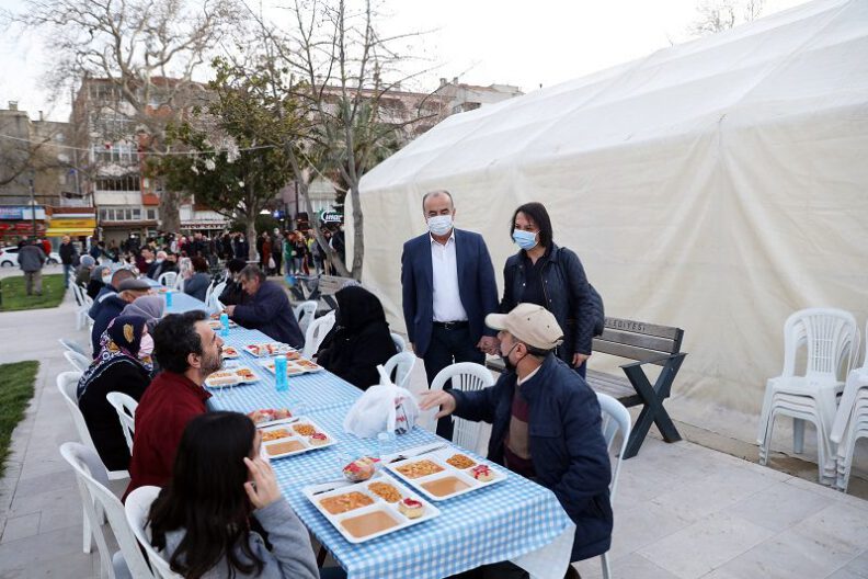 Bursa Mudanya ve Güzelyalı’da kurulan iftar çadırında oruçlar birlikte açılıyor. Ramazan ayının ilk iftarını vatandaşlarla birlikte Mudanya’da belediye önünde kurulan iftar çadırında yapan Başkan Hayri Türkyılmaz, huzur ve bereket ayı Ramazanın barışa, kardeşliğe, sevgi ve saygıya vesile olmasını diledi.
