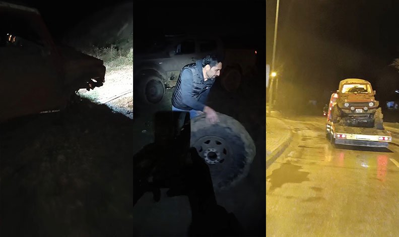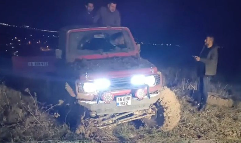 Mustafakemalpaşa ilçesinde bir grup arkadaş off-road yapmak için dağlık araziye çıktı. Bir süre boyunca off-road yapan gruptan bir kişi video çekmek için araçtan aşağı inince gözlerine inanamadı. Aracın sağ ön lastiğinin yerinde olmadığını sürücüye söylemesiyle birlikte herkes şaştı kaldı. Sürücü aracın lastiği olmadan kilometrelerce off-road yaparken o anlar cep telefon kamerasına yansıdı.
