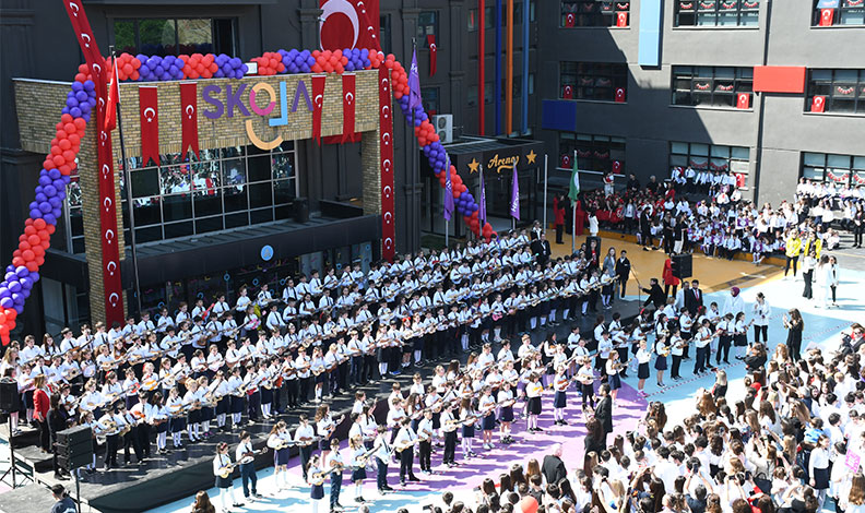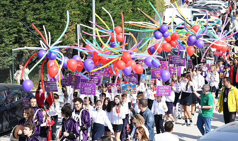 Ulu Önder Mustafa Kemal Atatürk’ün dünya çocuklarına armağan ettiği 23 Nisan Ulusal Egemenlik ve Çocuk Bayramı dolayısıyla Şahinkayalı öğrenciler görkemli bir tören gerçekleştirdi. Merkez kampüsten başlayan kortejde ellerinde Türk bayraklarıyla mutluluk içinde yürüyen öğrenciler caddeleri marşlarla inletti. Kortejin başını çeken Academy Bando Takımının dikkat çeken performansına eşlik eden öğrencilere semt sakinleri de balkonlardan ve dükkanlardan katılarak coşkuya ortak oldu.