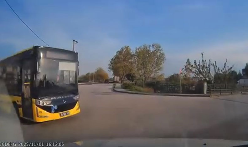Bursa’da ailesiyle birlikte ilerleyen otomobil sürücü, yola çıkan otobüsle kafa kafaya çarpışmamak için direksiyonu kırdı. Ölümle burun buruna gelinen o anlar saniye saniye araç kamerasına yansıdı.