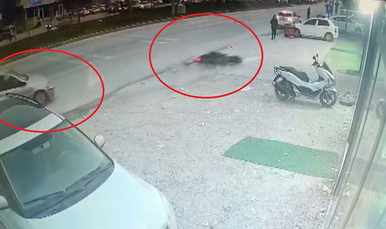 Kaza, Antakya ilçesi çevreyolu Ekinci Mahallesi mevkiinde yaşandı. Çevre yolundan sağa dönüş yapmak isteyen Fiat marka otomobille motosiklet çarpıştı. Motosikletin otomobile ok gibi sağlandığı kazada devrilen motosikletin sürücüsü metrelerce sürüklendi. Motosiklet sürücüsünün yaralandığı feci kaza anbean güvenlik kamerasına yansıdı.