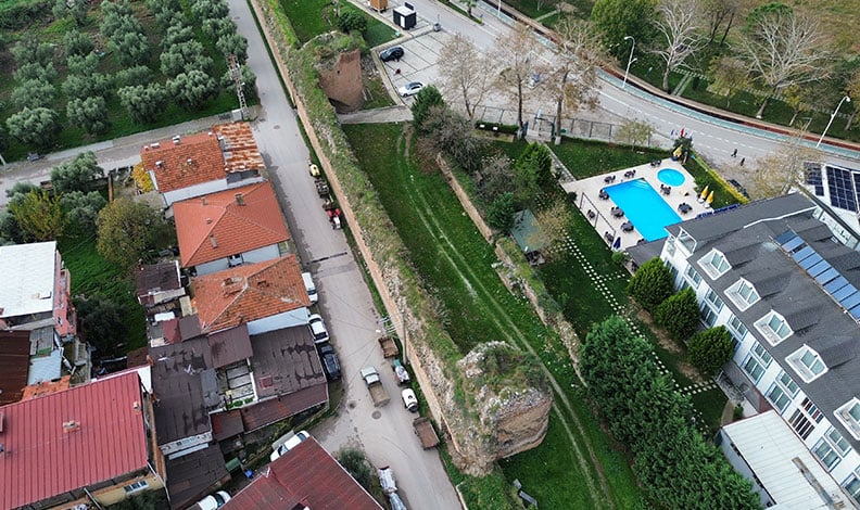 İznik Gölü yürüyüş yoluna sadece 10 metre mesafedeki parsel, tarihi 2 bin 200 yıllık sur duvarlarıyla çevrili olmasıyla dikkat çekiyor. Hobi bahçesi bile yapılamayacak arsanın dönümü 7,5 milyon lirayı buluyor.