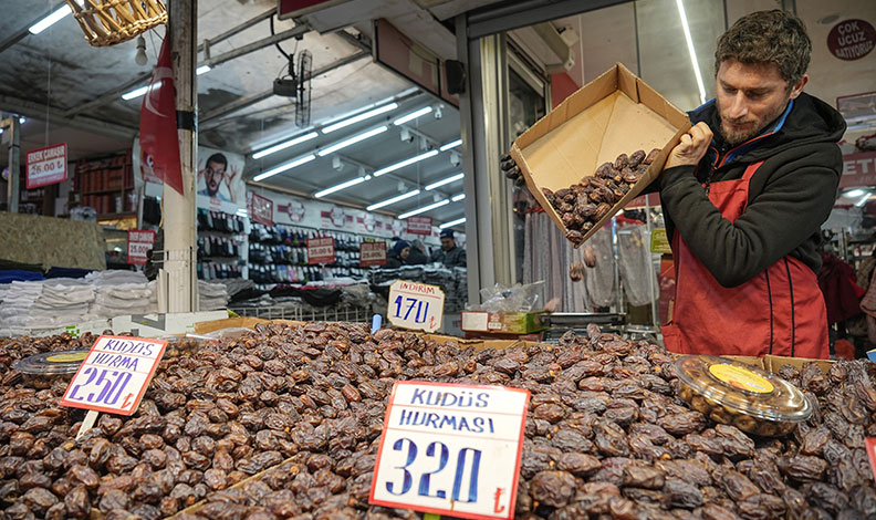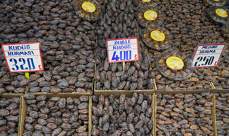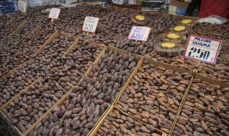 Ramazan ayı ile özdeşleşmiş hurma tezgahta yerini aldı. Çarşı pazara akın eden insanlar yoğunluk oluşturdu.