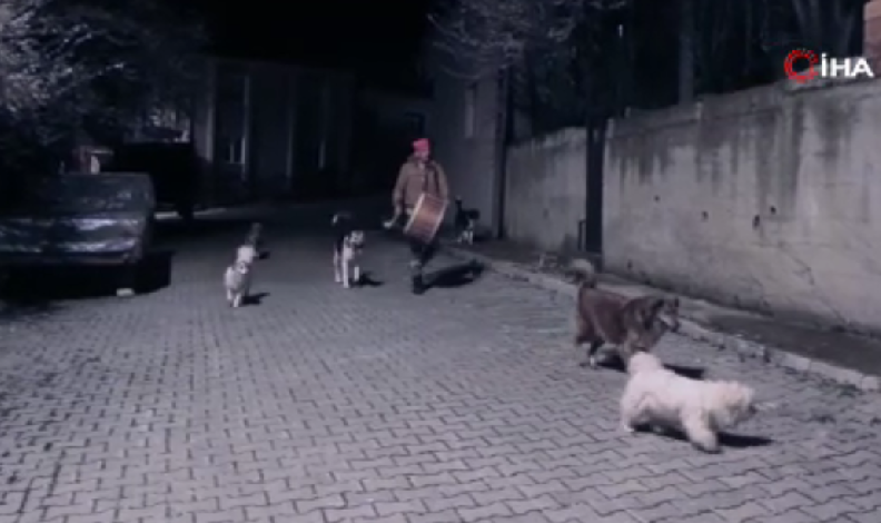 Samsun’un Havza ilçesinde hayvansever Ramazan davulcusunu sokak hayvanları yalnız bırakmıyor.