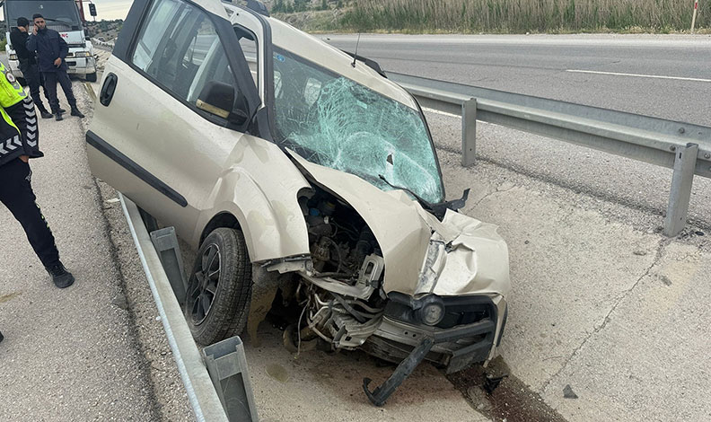 Afyonkarahisar’da kontrolden çıkarak yol kenarındaki refüje giren hafif ticari araçta 3 kişi yaralandı.