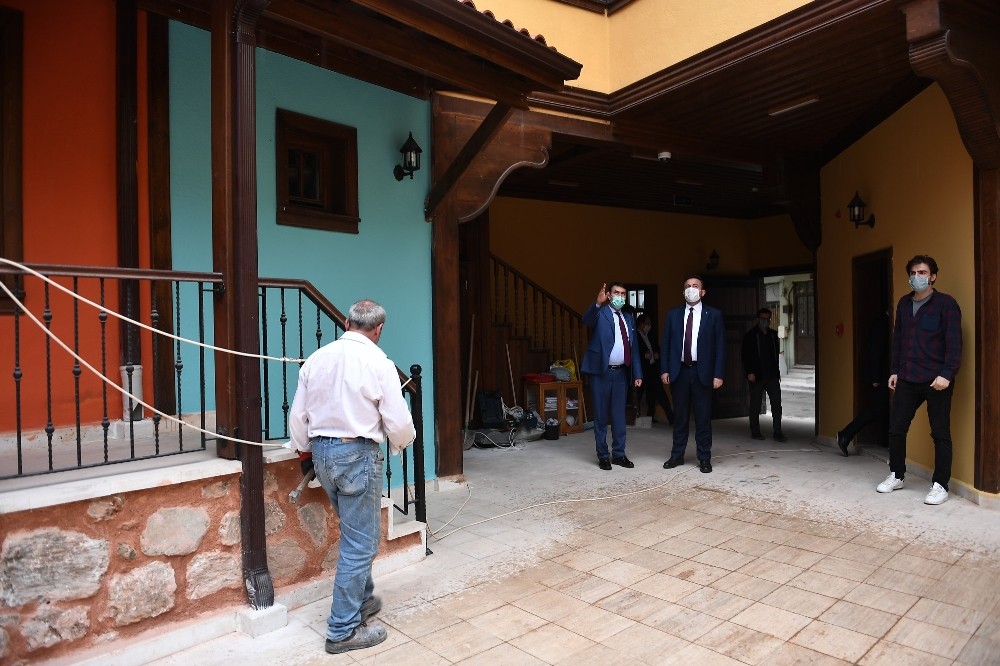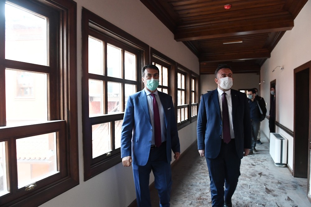 Osmangazi Belediye Başkanı Mustafa Dündar, yürütülen rekonstrüksiyon çalışmalarını yerinde inceledi. AK Parti Osmangazi İlçe Başkanı Ufuk Cömez ile birlikte tarihi hanı gezerek, yetkilerden çalışmalardaki son durum hakkında bilgiler alan Başkan Dündar, “Korona virüsün ülkemizde ilk görüldüğü andan itibaren hükümetimizin aldığı tedbirler ve kararlar doğrultusunda yaşamımızı sürdürdük. Bizler de çalışmalarımıza alınan tedbirler doğrultusunda yön verdik. Salgın sürecinde de tedbirlerimizi alarak yatırımlarımızı sürdürdük” dedi.