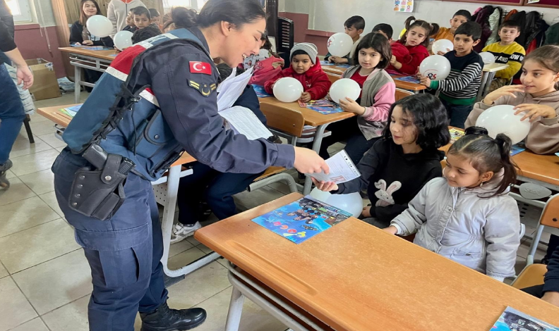 Etkinlik sonunda jandarma ekipleri, öğrencilere Jandarma Çocuk Dergisi ile balon hediye etti.