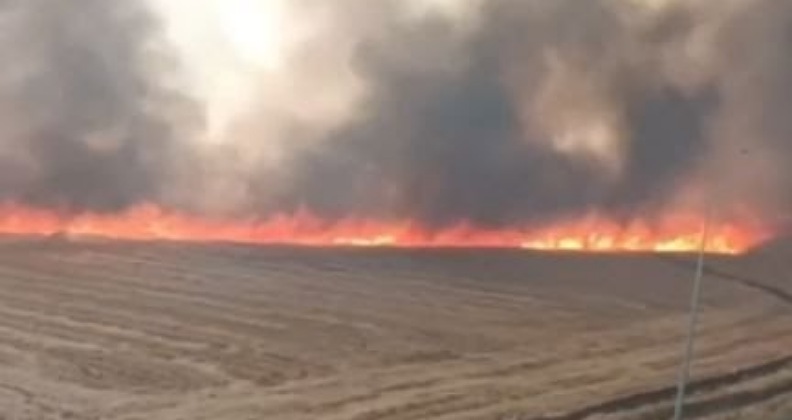 Şanlıurfa’nın Siverek ilçesinde ekili alanda çıkan yangında 100 dönüm arazi ve 200 ton saman kül oldu. Mahalle arasına yayılan yangının, evlere sıçraması son anda önlendi.