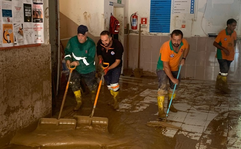 Trabzon Büyükşehir Belediye ekipleri 20 Eylül’de yaşanan selin ardından etkilenen okulları çamur ve rüsubattan temizliyor.