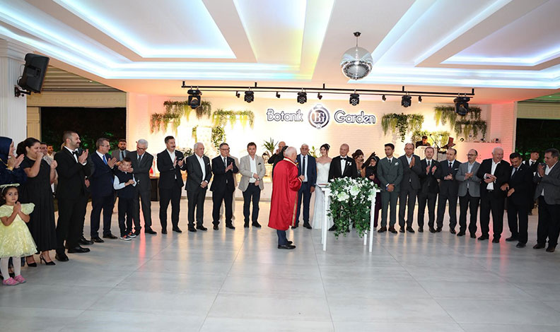 Bursa basınının tanınmış isimlerinden Gazeteci Cennet Yüzer Cankılıç’ın ev sahipliğinde gerçekleşen oğlu Arif Alperen ile Nermin-Salman Sabur ailesinin kızları Songül Sabur’un hayatını birleştirdiği düğün töreni uzun aradan sonra Bursa protokolunun buluştuğu güzel birlikteliklere imza attı. Gerçekleşen düğün Muradiye Külliyesi Baş İmamı Lütfi Taşçı Hoca’nın Kur’an-ı Kerim tilaveti ve duası ile başladı. Ardından çiftin nikahını Bursa Büyükşehir Belediye Başkanı Mustafa Bozbey kıyarken, Bursa’nın tanınmış isimlerinden oluşan nikah şahitlerinin sahnede uzun kuyruk oluşturması dikkat çekti.