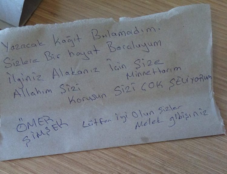 İnegöl Devlet Hastanesindeki tedavisinin ardından Kovid-19’u yenen 23 yaşındaki Ömer Şimşek taburcu edildi. Şimşek’in odasını temizleyen görevliler yatakta bir not buldu. Konu ile ilgili açıklamalarda bulunan Ömer Şimşek, “Bir hafta önce bugün korona virüs testim pozitif çıktı, çok korktum. İş yerimden eve geldiğim zaman 112 çalışanları ile bir araya geldim. Bana yapmam gerekenleri söylediler, eksiksiz yapacağıma dair söz verdim. Beni alarak hastaneye götürdüler. Şaka değil bu, korkunç bir hastalık. İçimdeki inancı, zafer duygusunu hiç yitirmedim, sürekli çabaladım ve yendim. İnançlı olun ve lütfen dışarı çıkmayın. Bana bir şey olmaz demeyin, ben de öyle diyordum, ama bu hastalığın ben de bir kurbanı oldum. Çabaladım ve yendim. Bana bir şey olmaz diyerek dışarı gezmeyin, evde kalın. Tedavim sırasında doktorlar, hemşireler benimle canları pahasına ilgilendiler. Gece 2’de, sabah 5’te arayıp, yanımıza gelip, ihtiyacınız var mı diye her dakika sordular, onlara minnet borçluyum. Elimden gelen tek bir şey vardı, bir mektup yazarak onların motivasyonunu yükseltmek. Odadaki kağıt mendilin kartonunu alarak ona yazdım, imkanım yoktu. Mutlu etmiştir umarım. Sağlık çalışanlarımız, sizleri çok seviyorum, iyi ki varsınız, hakkınızı helal edin” diye konuştu.
