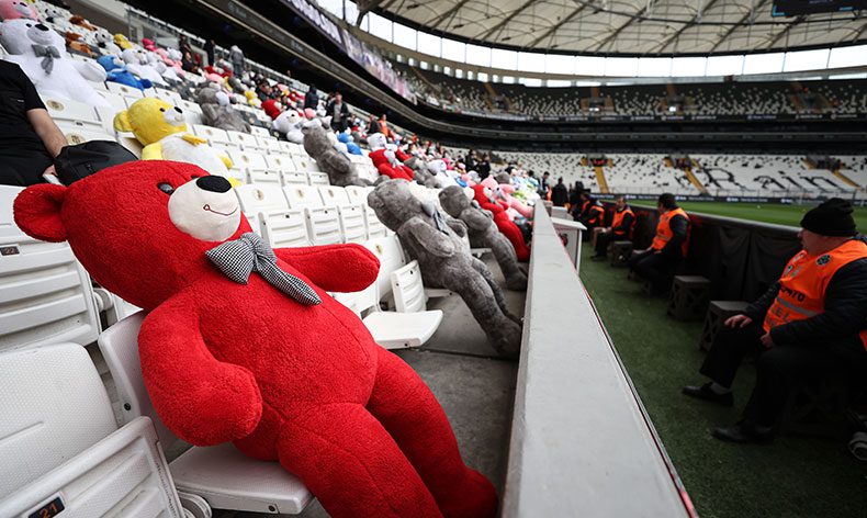 İlk depremin yaşandığı saat olan 4.17’ye ithafen maçın 4’üncü dakika 17’nci saniyesinde oyun durdu ve Beşiktaşlı taraftarlar, deprem bölgesindeki çocuklara gönderilmek üzere yanlarında getirdikleri binlerce peluş oyuncağı tribünlerden sahaya gönderdi.