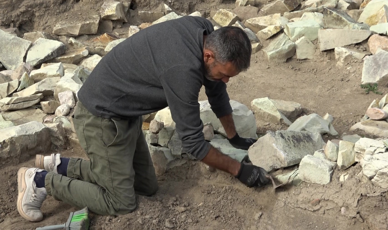 18 yıldır süren kazılarda Anadolu’da ilk defa bulunan 2 bin 600 yıllık Kubaba kutsal alanındaki 3 sunağın duvarlarının yüzde 90 oranında ince taneli tüf olarak adlandırılan volkanik kaya parçalarından oluştuğunu belirten Kazı Başkanı Prof. Dr. Şevket Dönmez, “Kutsal alanın inşasında yüzde 90 oranında bu taşın tercih edilmiş olduğunu anladık.