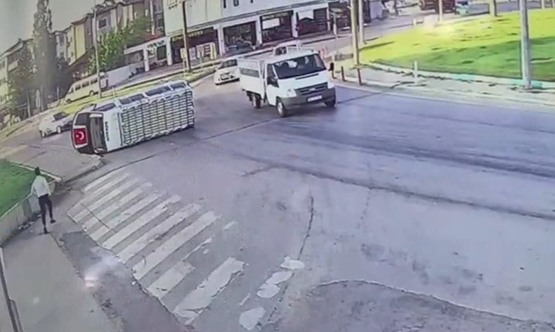Görüntülerde, minibüs kavşağa girdiği anda yaya yoluna çarpıp devrildiği, kaza sonrası minibüs içerisinde bulunan tarım işçilerinin çevrede bulunan vatandaşlar tarafından çıkartıldığı anlar yer aldı.