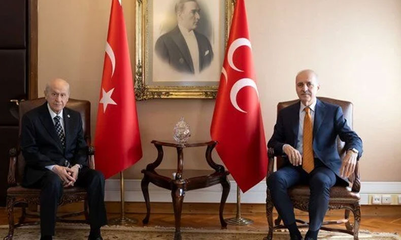 Türkiye Büyük Millet Meclisi (TBMM) Başkanı Numan Kurtulmuş, yeni anayasa çalışmaları kapsamında MHP Genel Başkanı Devlet Bahçeli’yi Meclis’teki makamında ziyaret etti. Görüşme sonrası açıklama yapan Kurtulmuş, ”Görüşü olan herkesin görüşlerini alırız. Bir takvim vermek zor. Zemini ve yöntemi doğru tartıştığımız zaman sonuç alabileceğimizi düşünüyorum.” dedi.