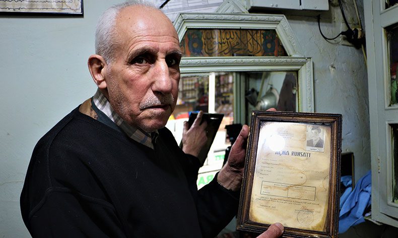 25 yaşından bu yana tek koltuklu ve 3 kişinin zor sığabildiği dükkanında geçimini sağlayan Bingöl, askere gidip geldikten sonra 1974 yılında belediye tarafından kendisine dükkan açma ruhsatının verildiğini kaydetti.