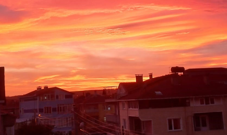 Tekirdağ’ın Muratlı ilçesinde gün batımında kızıl renge bürünen gökyüzü kartpostallık görüntüler ortaya çıkardı.