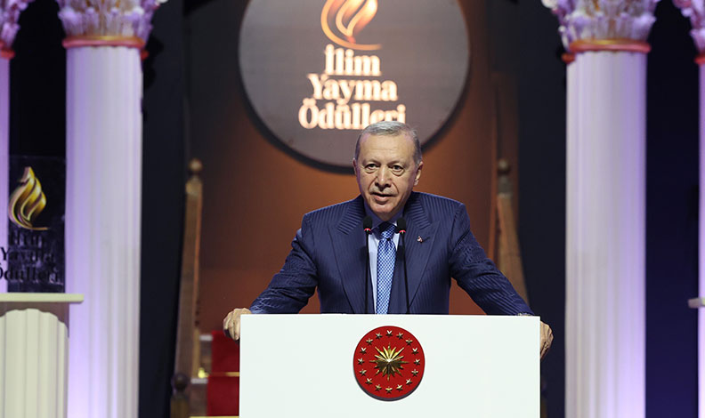 Cumhurbaşkanı Recep Tayyip Erdoğan, Atatürk Kültür Merkezi’nde “İlim Yayma Ödülleri” törenine katıldı. Programda konuşan Cumhurbaşkanı Erdoğan, “Temelleri 2017’de atılan, ilki 2019’da düzenlenen ve bu sene 4’üncüsü tertiplenen Türkiye’nin akademi ödülleri İlim Yayma Mükafatları vesilesiyle sizlerle beraberiz. Emeği geçen her bir kardeşime canı gönülden teşekkür ediyorum. Gerek ülkemizde gerek dünyanın farklı yerlerinde akademik faaliyetler icra eden tüm hocalarımıza selamlarımı, saygılarımı gönderiyorum. Biraz önce 3 farklı kategoride ödüllerini takdim ettiğimiz bilim insanlarımızı gönülden tebrik ediyorum. Büyük ödül sahibi hocamız vakıf tarafından 5 milyon TL ödülle mükafatlandırıldı. Diğer hocalarımız da 2’şer milyon TL ödülle ödüllendirildi. İlim Yayma Ödülleri’ne yönelik teveccüh her programda katlanarak artıyor. Bu sene üç ayrı dalda 174’ü üniversiteler olmak üzere 188 kurumdan bin 324 başvuru ile yeni bir rekor daha kırıldı. İlim Yayma Ödülleri’nin önümüzdeki yıldan itibaren uluslararası bir hüviyet kazanacağını büyük bir memnuniyetle öğrendik. Niçin bizim bir Nobel’imiz olmasın? İlim Yayma ailemizi bu adımlarından dolayı kutluyorum. İlim Yayma ödüllerinin amacı ilk planda elbette iyi eserleri ve eser sahiplerini takdir etmektir. Fakat hayata uyarlanmayan, insana, sahaya, reele dokunmayan bilginin netice vermediği de bilinen bir hakikattir. İlim Yayma ödüllerimizi bu açıdan başarılı bulduğumu belirtmek istiyorum” dedi.