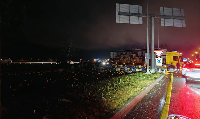 Olay, Menteşe İlçesinde bulunan bölge kavşağında akşam saatlerinde meydana geldi. Edinilen bilgiye göre narenciye sevkiyatı yapan tır sürücüsü, kavşaktan sert şekilde dönüş yapmaya çalıştı. Bu sırada tırın yan kapağı, portakal dolu kasaların ağırlığına dayanamadı ve tonlarca narenciye yola saçıldı. 112 Acil Çağrı Merkezi’ne yapılan ihbar sonrası bölgeye trafik ekipleri sevk edildi. Ekipler, yolu trafiğe kapattı. Ardından bölgeye gelen Menteşe Belediyesi’ne bağlı temizlik ekipleri yolu temizlerken, yol uzun süre sonra trafiğe tekrar açıldı. Yaşanan olay sırasında kavşakta başka bir aracın olmaması muhtemel bir başka kazayı önledi.