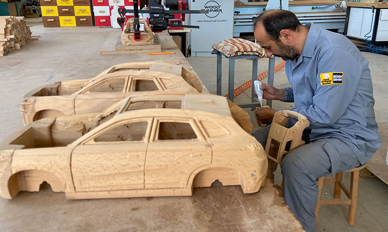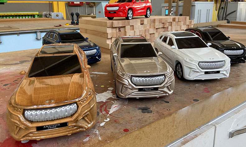 Atölyede makine teknikerliği yapan Alaaddin Erdoğan, TOGG’un ilk yayınlandığı zaman fotoğraflarını aldıklarını ve bilgisayara indirdiklerini anlatarak, “Önden, yandan, üstten görüntülerini 3 boyutlu modellerini nasıl yapabiliriz diye düşündük. 4 aylık AR-GE sürecinden sonra tasarımımızı bitirdik. Sonra makineler yardımıyla ahşabı işlemeye başladık. TOGG, 6 renk çıkardı. Biz de 7. renk olarak Konya’ya özgü ‘Çatalhöyük’ modelimizi çıkardık. Ona ahşabın kendi özgün kayın rengini vermeye çalıştık. 15 parça halinde tamamen ahşaptan üretiliyor. TOGG’un bütün detaylarını vermeye çalıştık. Tüm ince detaylarını ahşaba aktarmaya çalıştık. Bizim için de büyük bir gurur tabii ki. Özellikle ahşap olması çok iyi. Çocukların ahşaba dokunabilmesi önceliğimiz. 7. renk olarak ‘Çatölhöyük’ modelimizi de çıkarmamız bizim için ayrıca bir gurur” dedi.