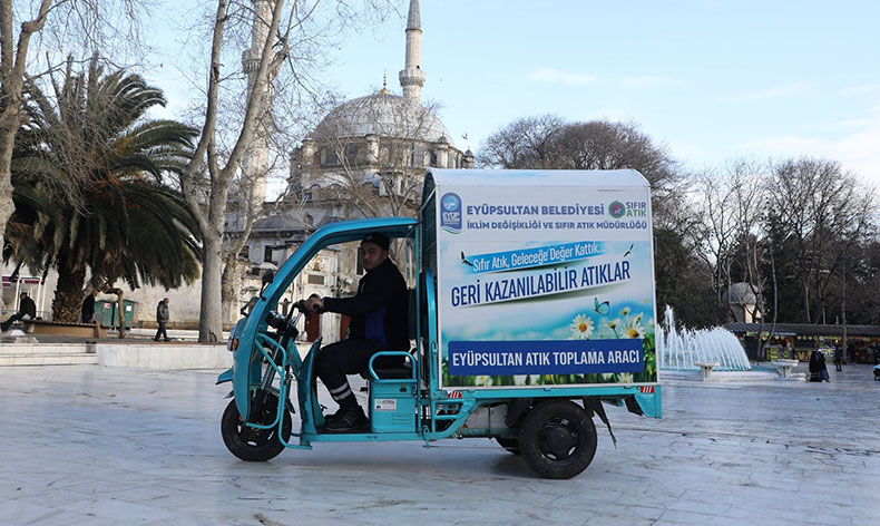 Eyüpsultan Belediyesi, daha temiz bir çevre ve sürdürülebilirliği artırmak için “Sıfır Atık” çalışmalarına devam ediyor. İlçede triportör adı verilen üç tekerlekli araçlarla geri dönüştürülebilir atıklar toplanmaya başlandı. Araçlar 09.00-18.00 saatleri arasında cami meydanında bulunan market, bakkal gibi dükkanlardan geri dönüşümü yapılabilen kağıt, pet şişe, plastik, karton ve metal meşrubat kutuları gibi atıkları topluyor. Bu çalışma sayesinde israf engellenerek, doğaya zarar veren maddelerin geri dönüştürülerek ekonomiye katkı sağlaması hedefleniyor. Bazı özel günlerde çalışma saatlerinde değişiklik yapılabilirken, dükkanlarda farklı zamanlarda ambalaj atığı çıkarıldığında belediye personeli ile irtibata geçiliyor ve malzemeler alınıyor.