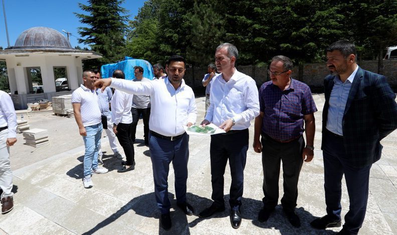Burada yapılan çalışma ile türbe ve şadırvan restore edilirken, mevcutta bulunan lavabolarda da tadilat yapılacak ve yanına bay bayan mescitleri ilave edilecek. Yaklaşık 3 bin metrekare alana sahip meydanda; ön alanı, kafeterya, sert zemin uygulamaları ve çevre aydınlatmaları yapılacak. Bunların haricinde 240 metre uzunluğunda yeni taş duvar imalatı ve mevcuttaki 400 metre uzunluğundaki taş duvarlarda düzenlemeler yapılıyor. Bursa Valiliği’nin de destek verdiği projenin yol sonuna kadar tamamlanması hedeflenirken, Belediye Başkanı Alper Taban bugün beraberindeki heyetle birlikte alanda incelemelerde bulundu.