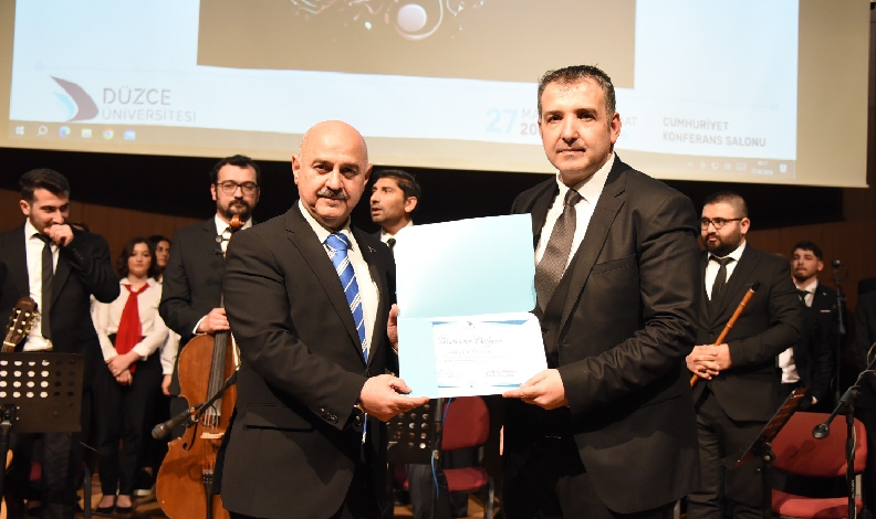 Programın sonunda Düzce Üniversitesi Rektörü Prof. Dr. Nedim Sözbir tarafından Türk Tasavvuf Müziği Konserinde emeği geçenlere teşekkür belgeleri takdim edildi.