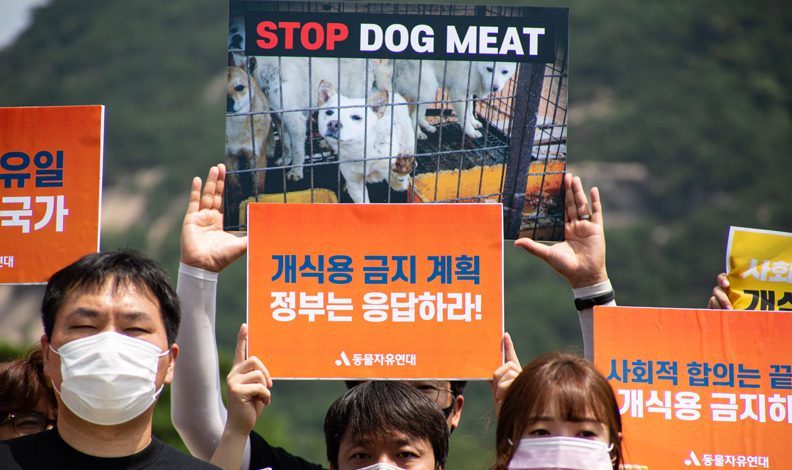 Güney Kore’de her yıl köpek eti tüketimi için yaklaşık 1 milyon köpeğin katledildiği tahmin edilirken, köpek etine olan talep özellikle gençler arasında son yıllarda önemli ölçüde azaldı. Güney Kore Devlet Başkanı Yoon Suk Yeol’un eşi First Lady Kim Keon-hee, Güney Kore basınına verdiği demeçte, köpek eti tüketimini eleştirdi.