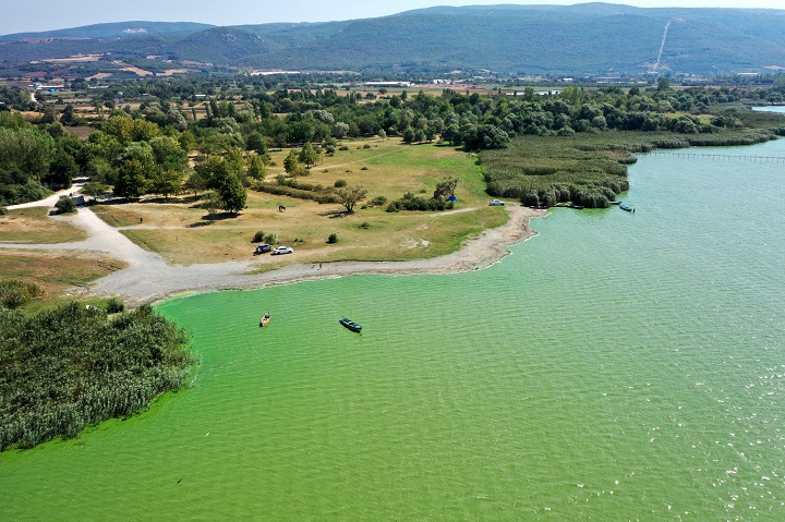 Bursa’da Uluabat Gölü, yeşil renge boyandı. Uludağ Üniversitesi (BUÜ) Biyoloji Bölümü Öğretim Üyesi Doç. Dr. Nurhayat Dalkıran gölde alg patlaması yaşandığını belirterek, “Suya karışan atıklar, göldeki azot ve fosfor oranını artırdığı için algler çoğalıyor. Alglerin çoğalması suda yaşayan ve gölden balık yiyen canlılara zarar veriyor” dedi.