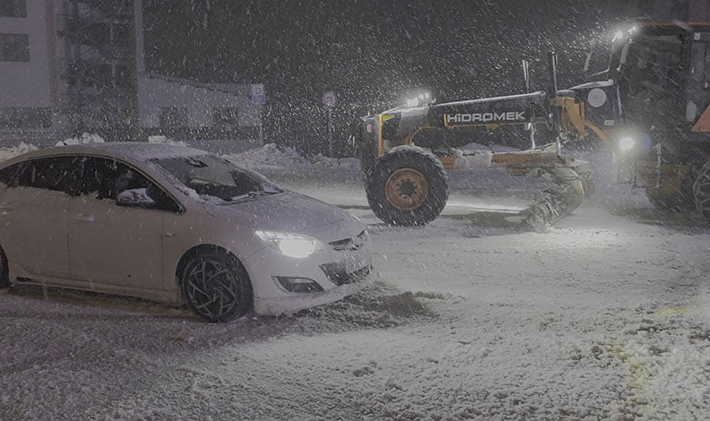 Karayolları ekipleri hem oteller bölgesinde hem de yol güzergahında kar küreme çalışması yapıyor.